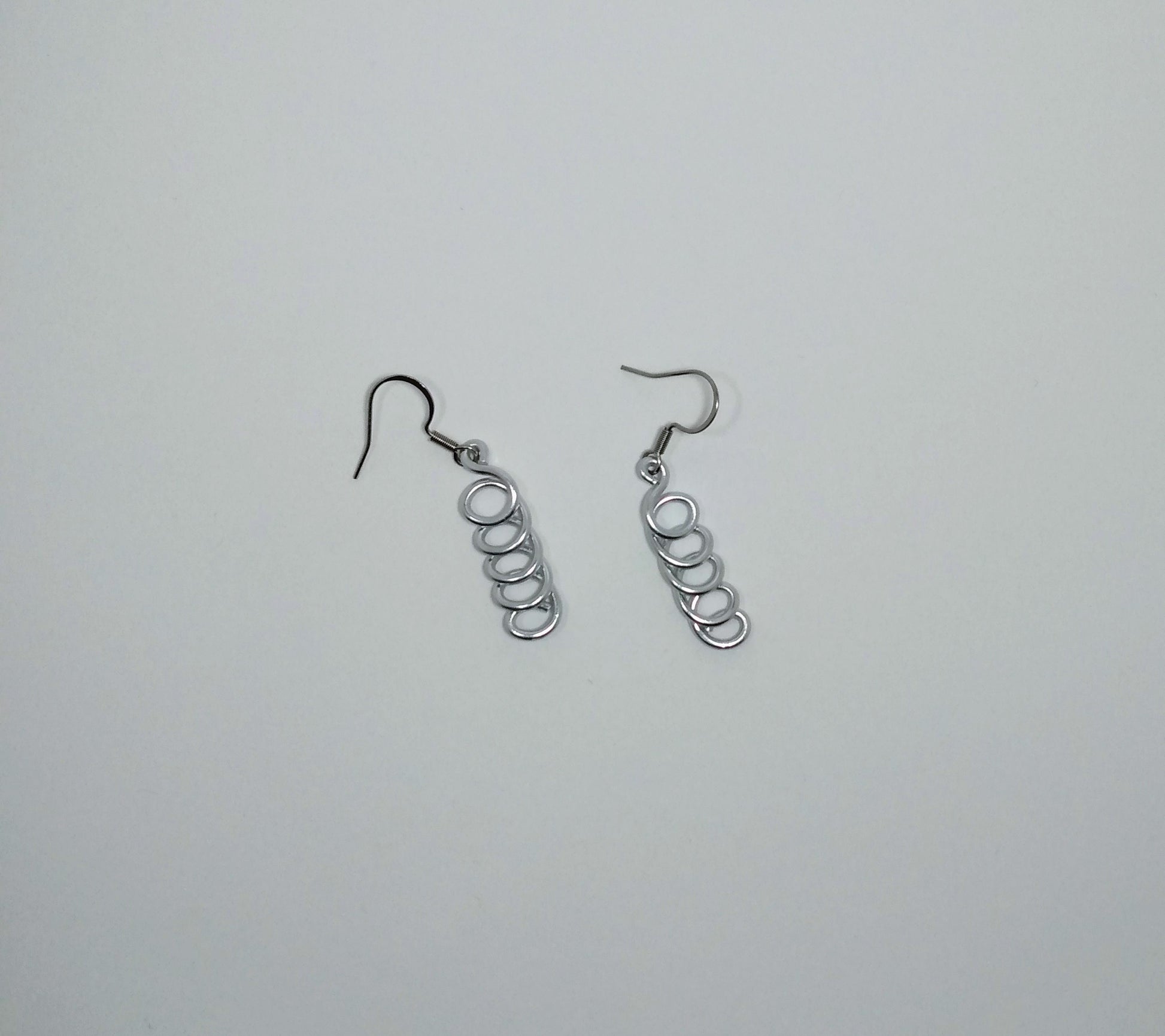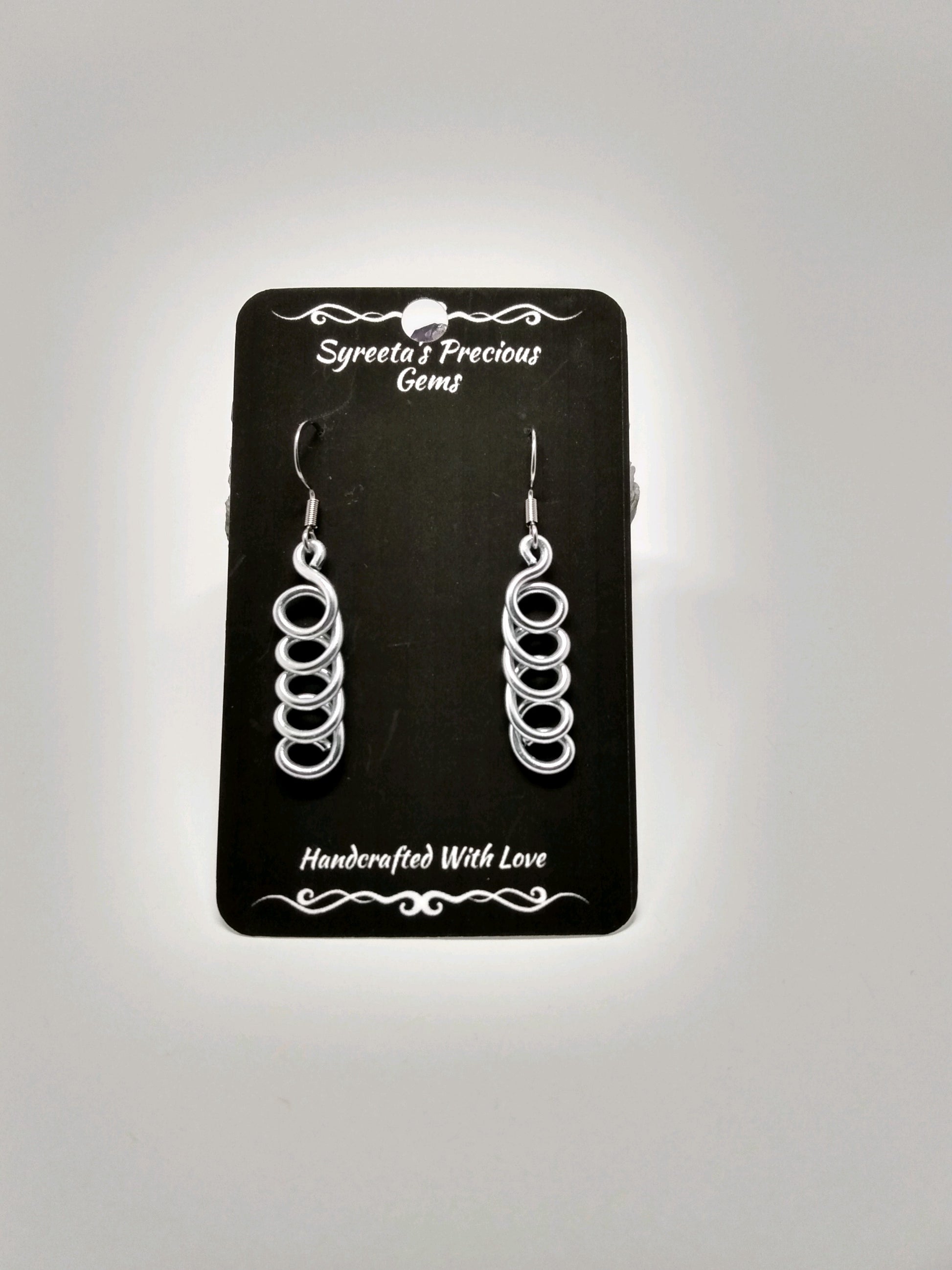 These cute earrings are casual, simple, yet unique. They were handmade using aluminum wire, making them lightweight and perfect for everyday wear. They measure approximately 1.75 inches long and include stainless steel earrings.