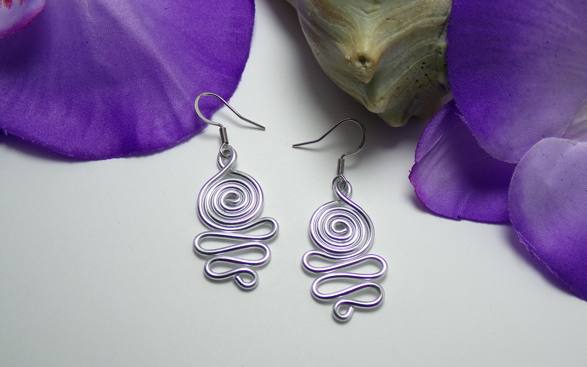 These one-of-a-kind dangle earrings were handmade using lightweight aluminum wire. Made with high-quality aluminum wire, they are lightweight and comfortable to wear all day long. The unique swirl design adds an eye-catching element that will make you stand out from the crowd.