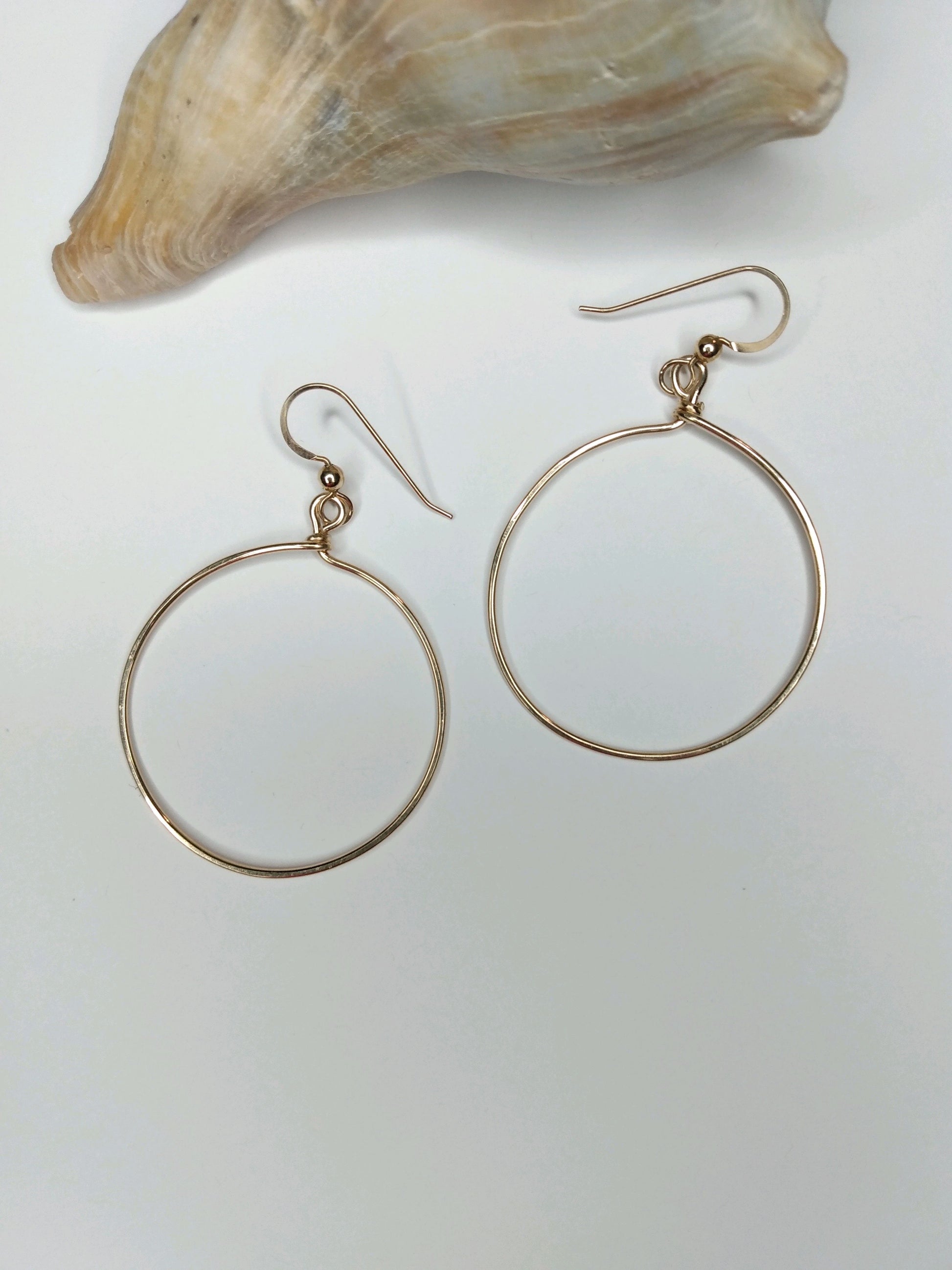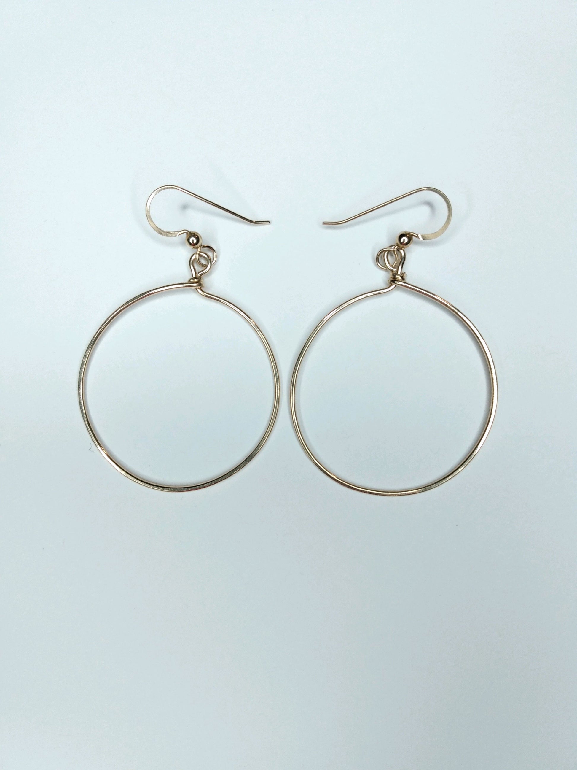 Handmade using high-quality 14k gold-filled wire, these 2.25 inch hoops are a stylish addition to any outfit. The durable construction ensures long-lasting wear, while the elegant design adds a touch of sophistication. Upgrade your jewelry collection with these large gold hoops.