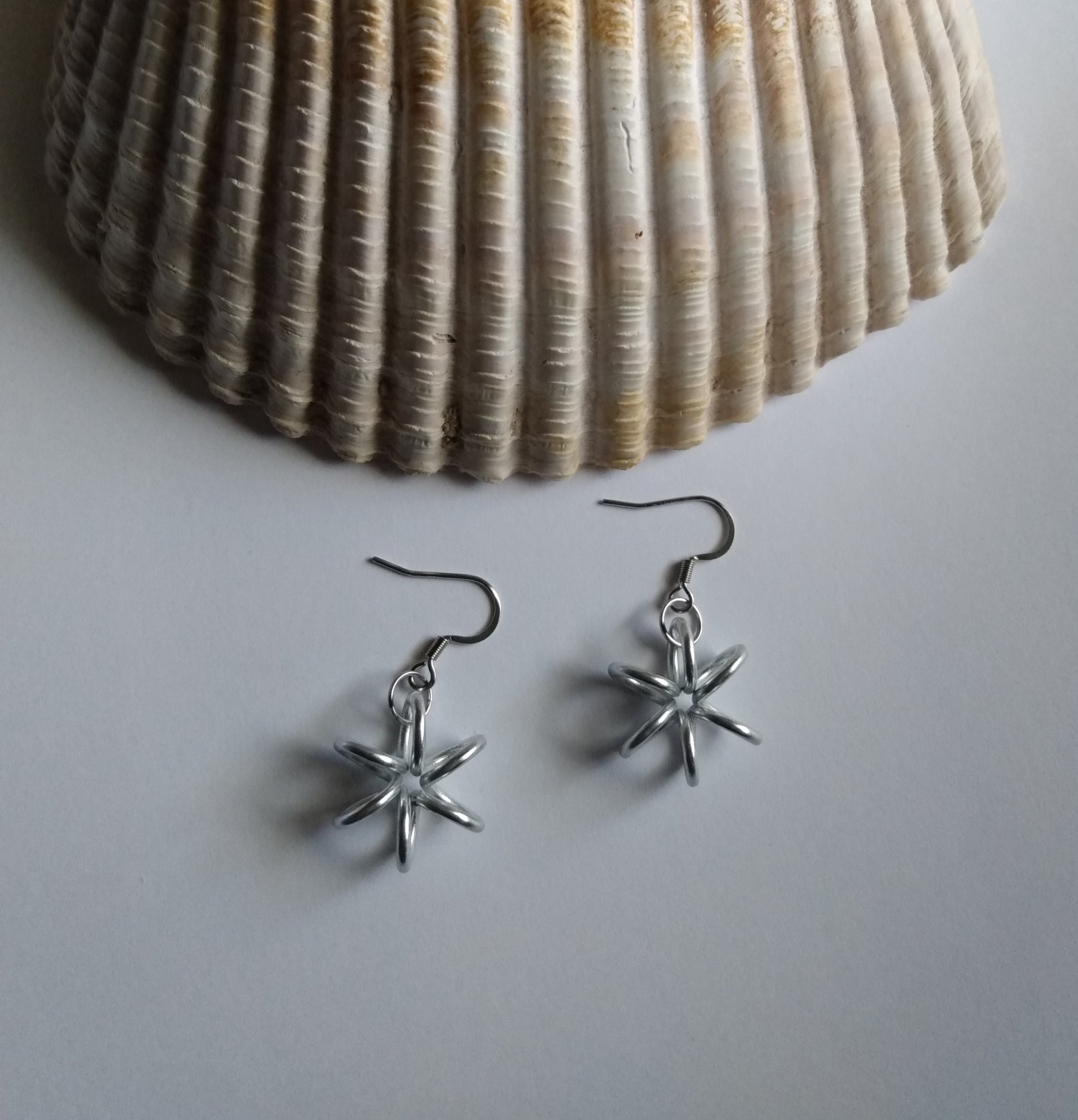 These handmade stylish earrings are sure to complement any outfit. Anodized aluminum wire was twisted and formed to create a unique shape. They include stainless steel ear wires. They measure just over 1.25 inches long.