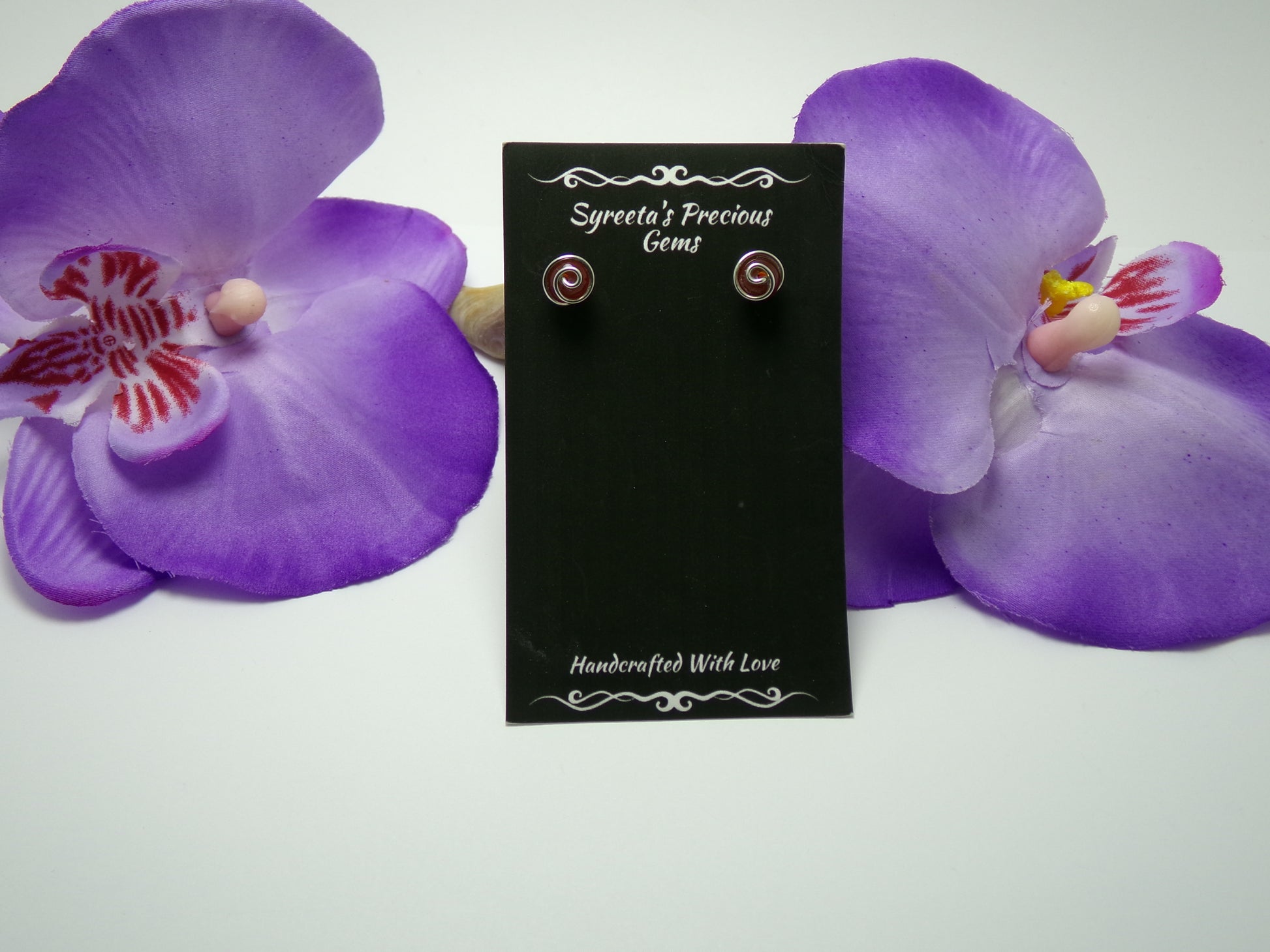 Handmade from sterling silver wire, these stud earrings showcase stunning carnelian stones. The vibrant hues of the carnelian, coupled with the sturdy and elegant swirl frame of the silver wire, make these earrings both stylish and one-of-a-kind.