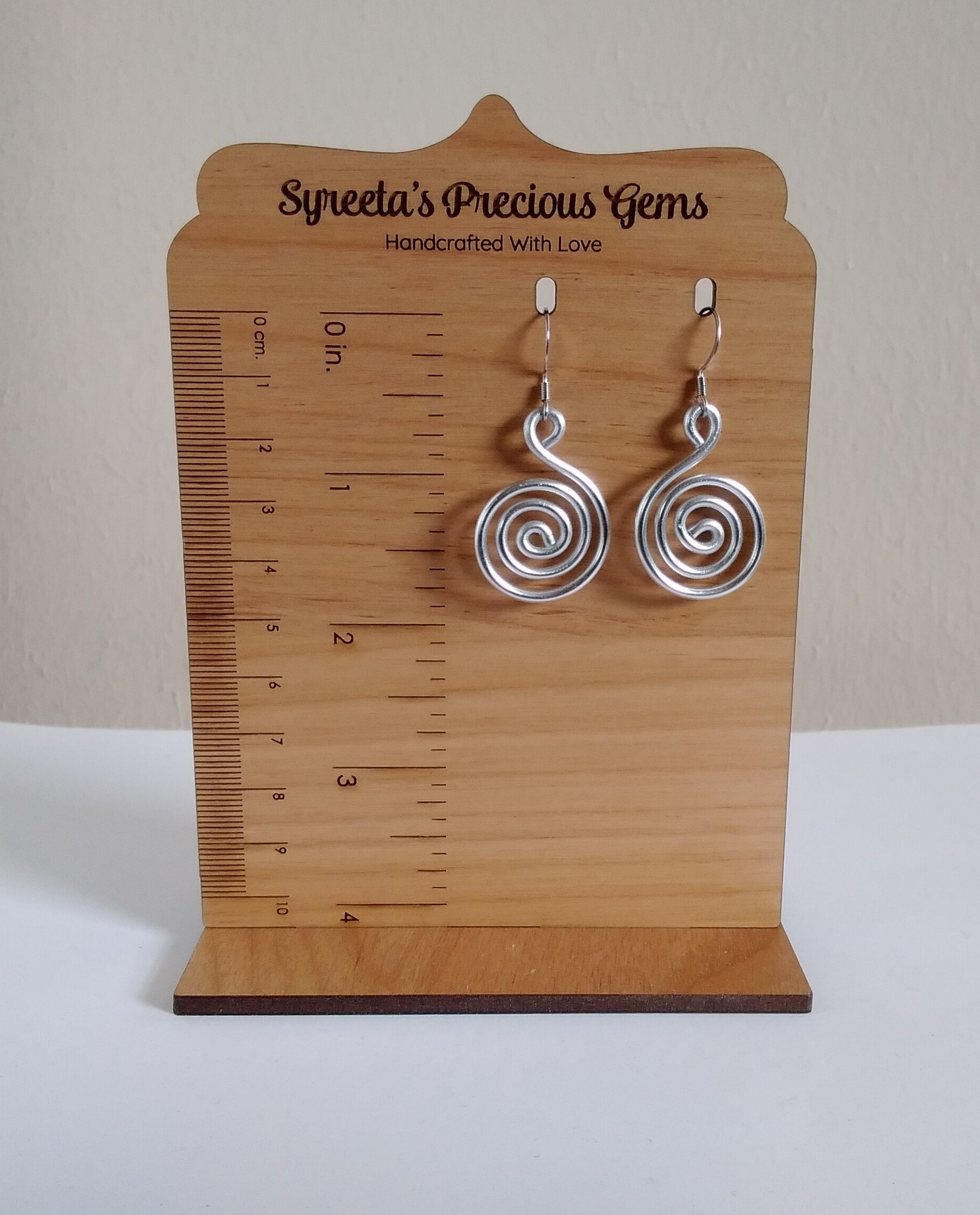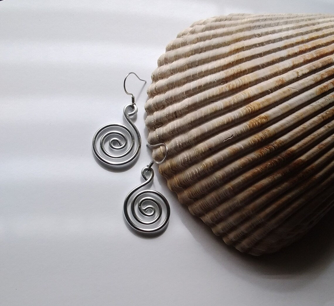 These handmade, stylish earrings are sure to stand out. Anodized aluminum wire was twisted and formed to create a unique shape. They measure approximately 1.75 inches long. They include stainless steel ear wires.